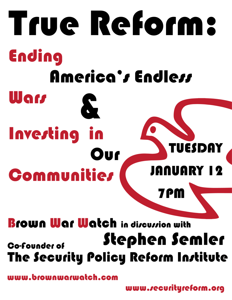Brown War Watch will meet online this Thursday evening at 8pm to discuss ongoing conflicts, developments in the military industrial complex, tension amongst superpowers, and pathways to peace.